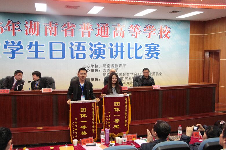 本网讯 11月5日,由湖南省教育厅主办的,湖南省高等教育学会日语专业委员会和吉首大学承办的2016年湖南省普通高等学校大学生日语演讲比赛举行。来自中南大学、湖南大学、湖南师范大学等省内18所高校的50名选手参加了本次比赛。德赢官网共派出3名选手参赛。