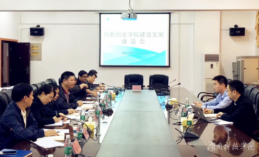 本网讯 10月24日,为了深化学校创新创业教育改革, 将创新创业教育融入人才培养,学校召开创新创业学院建设发展座谈会。副校长李常健,副校长、创新创业学院院长程智开出席。凹凸人集团董事长邹秀峰,凹凸人集团华中大区总经理、湖南凹凸人互联科技有限公司总经理成忠及创新创业学院院务委员会委员参加座谈。