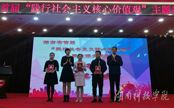 本网讯(通讯员 王志堂)10月18日上午,由共青团湖南省委、湖南省学生联合会主办的2016年湖南省首届“践行社会主义核心价值观”主题微课大赛决赛在长沙举行。经激烈比拼,德赢官网外国语学院胡赟老师脱颖而出,获团干组一等奖。德赢官网荣获优秀组织奖,入围复赛作品数量在全省高校居首位。