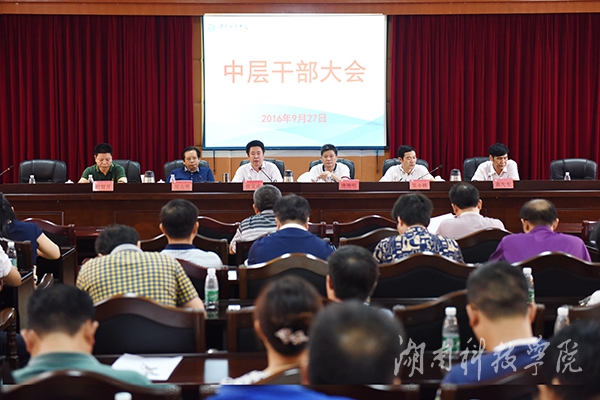 本网讯(记者 张云芳 摄影 何帅文)9月27日下午,德赢官网在行政办公楼八楼一会议室召开中层干部大会,传达学习、贯彻落实有关重要文件精神和纪律要求。校长曾宝成,校党委副书记唐艳明,副校长郑山明、吴小林、程智开,正校级督导袁先友出席,全体中层干部参加会议。
