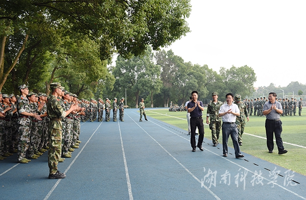 本网讯 (摄影 何帅文) 一抹抹跃动的军绿色为秋日的校园增添勃勃生机与活力,嘹亮有力的口号声训练场上空不断回荡。9月20日下午,校长曾宝成、副校长程智开一行前往学校各个训练场地看望慰问全体军训教官和参训的2016级新生。