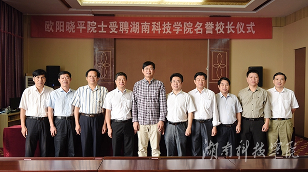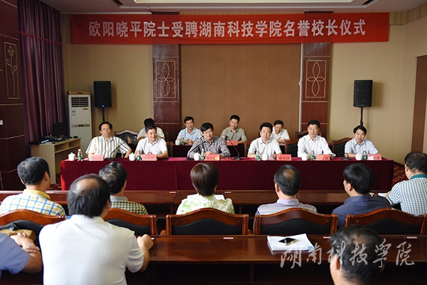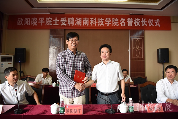 副校长郑山明宣读了《关于聘请欧阳晓平院士担任名誉校长的决定》(湘科院党字[2016]42号)。