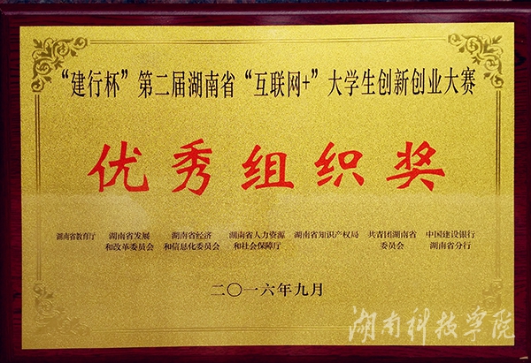本届“互联网+”大学生创新创业大赛由湖南省教育厅、省发展和改革委员会、省经济与信息化委员会、省人力资源和社会保障厅、省知识产权局、共青团湖南省委员会、中国建设银行湖南省分行共同主办,湖南省大中专学校学生信息咨询与就业指导中心承办。全省117所高校18365个项目注册,有效报名项目10252个。省级复赛分三轮进行,通过项目计划书评审、创业项目视频展示、现场展示、现场答辩、与投资人面谈、互联网投票等多个环节,共决出了创意组一等奖7个、二等奖19个、三等奖26个;初创组一等奖6个、二等奖18个、三等奖24个;成长组一等奖3个、二等奖8个、三等奖9个;最佳创意奖1个,最具商业价值奖1个,最佳带动就业奖1个,最具人气奖1个;优秀组织奖10个,最佳指导教师奖10个。