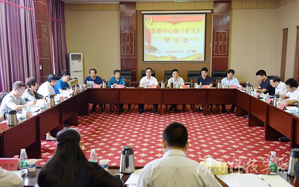 本网讯 (摄影 何帅文)9月1日,党委中心组(扩大)在行政办公楼八楼三会议室专题学习了习近平总书记在庆祝中国共产党成立95周年纪念大会上的讲话、省委组织部副部长胡奇在2016年全省普通高校领导干部暑期研讨班上的讲话、《中国共产党问责条例》、《湖南省普通高等学校党委领导下的校长负责制实施办法》和《德赢ac米兰官方合作vwin章程》等讲话和文件精神。校党委书记陈弘主持并讲话。
