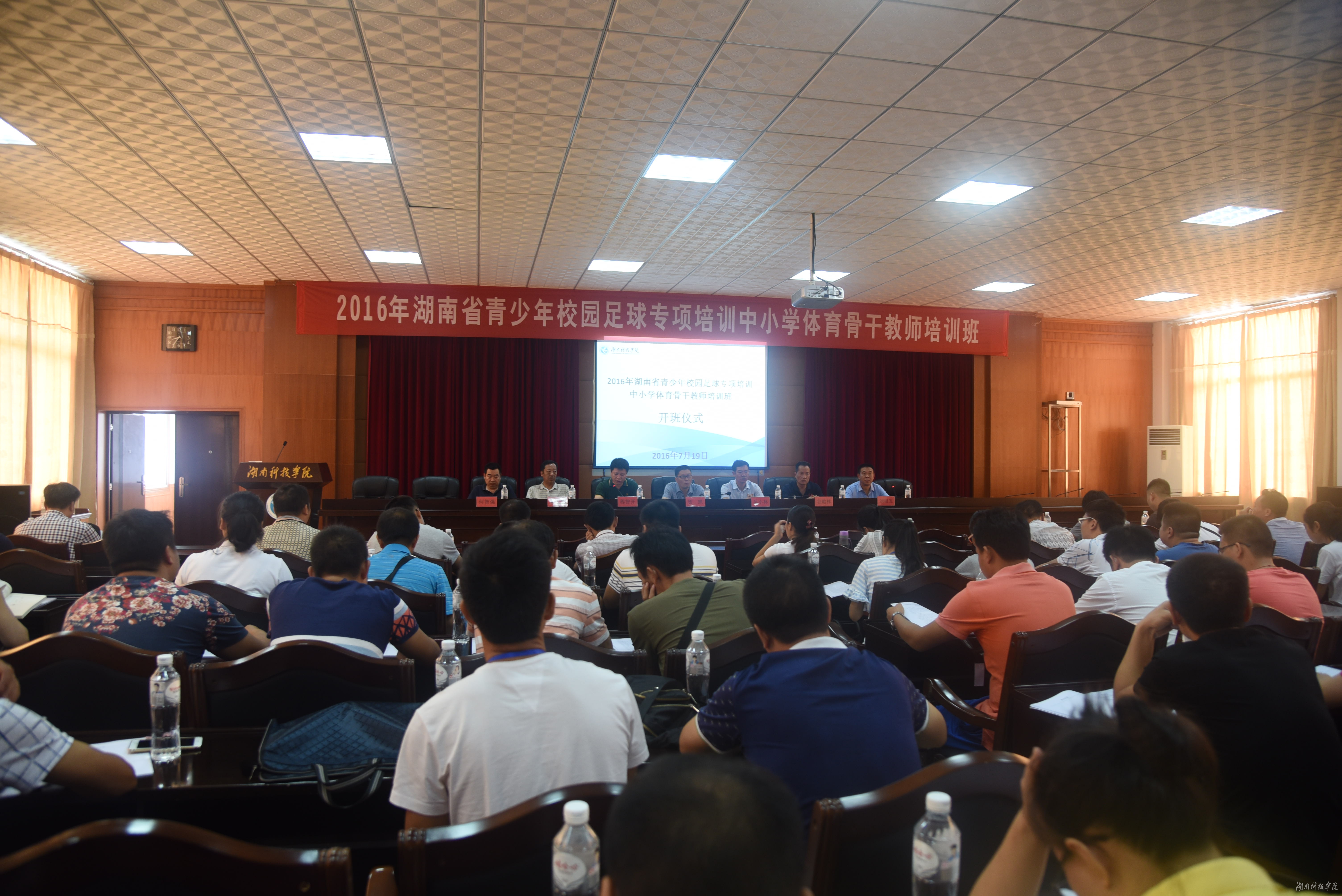 本网讯(通讯员 刘国华) 7月19日,2016年湖南省青少年校园足球专项培训中小学体育骨干教师培训班在德赢官网开班。湖南省教育厅体卫艺处副处长贺照,副校长吴小林、程智开出席开班仪式。来自永州、郴州的60多名中小学体育骨干教师参加为期近半个月的校园足球专项培训。