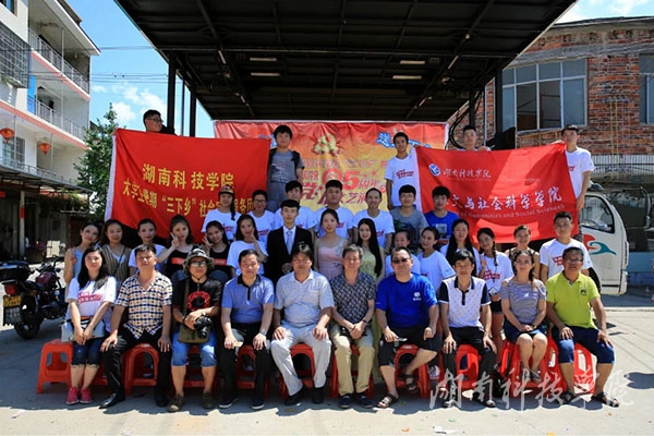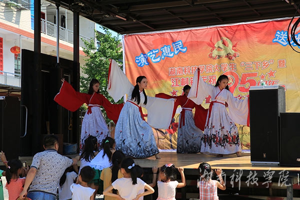 7月7日,该院与双牌县文体广新局、江村镇人民政府共同举办了德赢ac米兰官方合作vwin大学生“三下乡”暨江村镇庆祝建党九十五周年文艺演出。此次演出内容丰富,形式多样。歌曲《美在永州》,唱出了永州人民的心声;轻盈灵动的瑶舞与富有异域风情的印度舞,彰显了不同地域文化的特色与活力。其中,双牌县文体广新局副局长刘兴国原创的歌曲《湘恋》和文化馆声乐专干唐红梅演唱的歌曲《欢天喜地》,分别表达了对家乡深沉的依恋和对美好生活的向往;《大渡河畔英雄多》情景剧突出主题,真实地还原了红军十八勇士强渡大渡河的英雄事迹……新颖与经典相融,受到当地群众的欢迎。