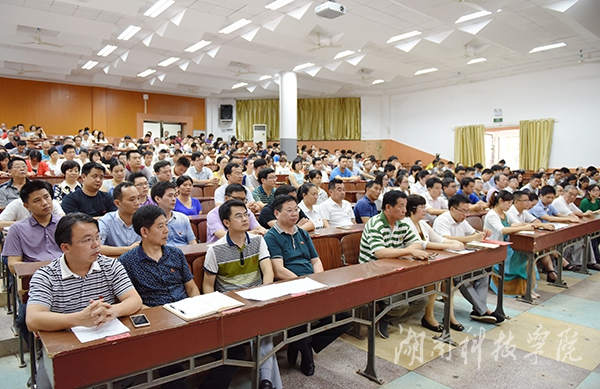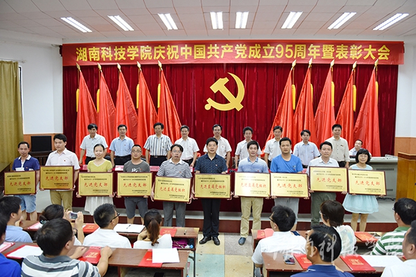 陈弘围绕“信仰、担当、忠诚”三个关键词,回顾了中国共产党95年来的光辉历程,并号召广大共产党员继续发扬先锋模范作用,秉承党的信仰,紧紧围绕在以习近平同志为核心的党中央周围,同心同德,用奋斗书写新的辉煌。他指出,对于科院人而言,信仰是坚定对共产主义、对学校转型发展的信心;担当是把学校“十三五”规划和党代会提出的目标记在心上、落实在行动中,严守党规,把本职工作做好;忠诚是爱校荣校、敬业爱岗,时刻牢记自己是8800万党员的一分子,是湘科院的一分子,主动思考、积极解决面临的问题,以更加务实的作风、振奋的精神、强烈的使命感和责任感,开拓创新,共同为学校的发展做实事。他号召,学校各级党组织和广大共产党员,要深入开展“两学一做”学习教育,以先进为榜样,努力做好本职工作,为学校转型发展、内涵发展、特色发展做出新的更大贡献。