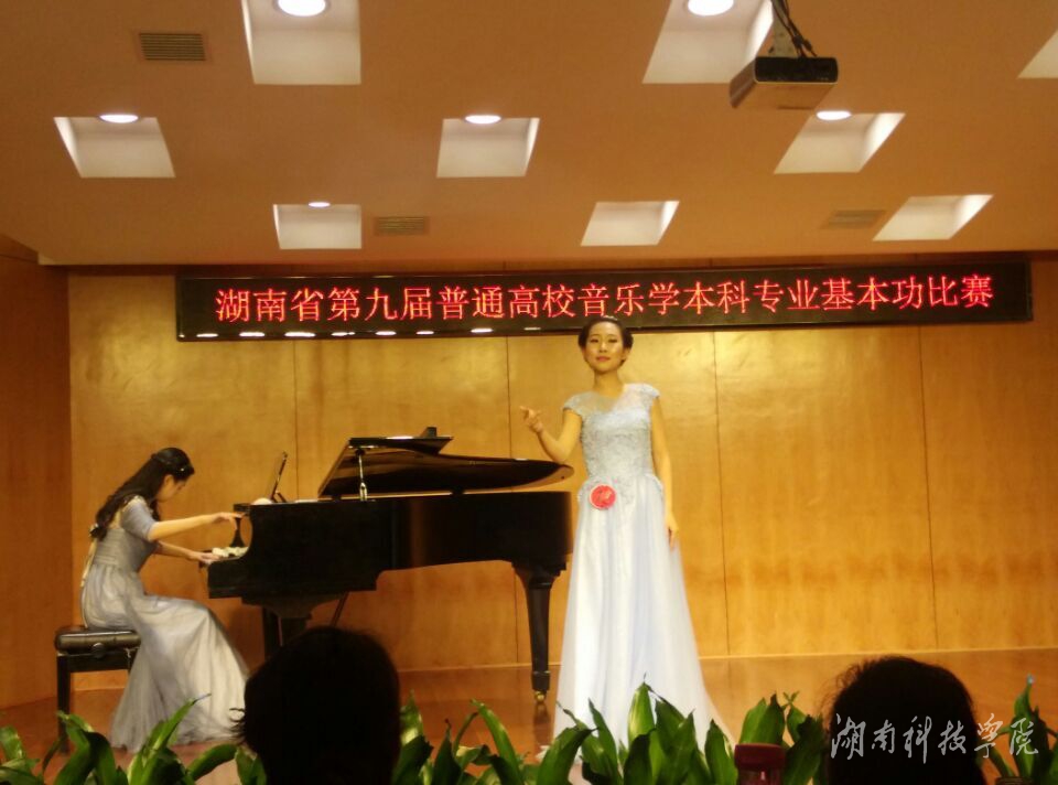 本次比赛由湖南省教育厅、湖南省学校艺术教育委员会主办,共有17所省内本科院校参赛,比赛项目包括音乐基础理论综合测试、声乐演唱、钢琴演奏、自弹自唱、合唱指挥。