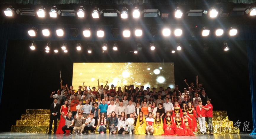 在晚会毕业礼环节,校长曾宝成等领导为优秀毕业生代表拨穗,并与他们合影留念。曾宝成向化生院2016届毕业生致以美好祝福,勉励毕业生们坚定理想信念,继续奋发向上,希望他们在毕业后常回校看看。
