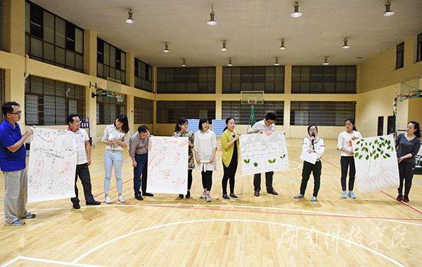 此次体验式团体活动由党委组织部党支部牵头,党政办党支部、党委宣传统战部党支部、纪委党支部参与。活动主要包括“准确连接”、“快速选择”、“集体智慧”和“自我反省”四个环节。活动正式开始前,全体党员被随机分成两个队,分别选出队长,确定队名,即“四有队”和“发展队”,创建了各自团队文化。“准确连接”环节通过准确连接党章相关知识,提高全体党员对党章的知识掌握;“快速选择”环节则通过完成碎片化知识多项选择,检验团队成员对党章党规理解的程度,培养团队协作意识;“集体智慧”环节两队群策群力,发挥集体的智慧,围绕《中国共产党章程》的四大亮点展开讨论,每队代表以图文并茂的形式对展示内容进行现场宣讲;“自我反省”环节要求党员对照党章查找自身存在的不足,深入分析原因,明确努力的方向。