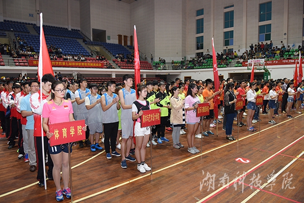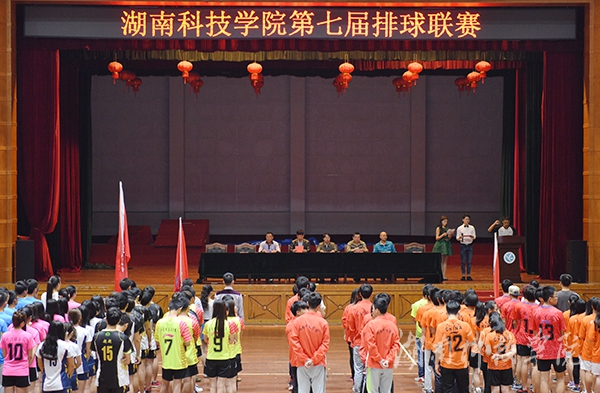 本网讯(记者 肖浪 摄影 何帅文)5月20 日,学校第七届排球联赛开幕式在体育馆举行。副校长李常健出席开幕式并宣布开赛。来自全校各教学学院的男女23支队伍、256名运动员参赛,比赛将持续至本月底。