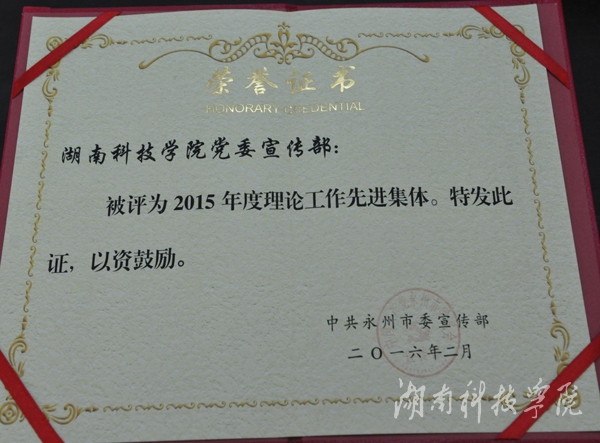 本网讯 中共永州市委宣传部下发《关于表彰2015年度理论工作先进集体和先进个人的决定》(永宣办〔2016〕2号),德赢官网党委宣传部被评为先进集体。全市共评选出6个理论工作先进集体。