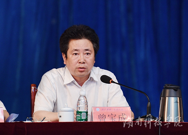 曾宝成在讲话中指出,回顾过去三年,学校在教学改革、人才培养等方面取得了可喜成绩,尤其是教师获得湖南省普通高校课堂教学竞赛三等奖以上奖励17人次,其中一等奖6人次,获奖等级和数量居同类院校前列;学生获得省级以上学科专业竞赛奖励130余项,其中获全国第四届大学生艺术展演一等奖和优秀创作奖、首届中国“互联网+”大学生创新创业大赛总决赛银奖等等。但在看到成绩的同时,我们也要清醒地认识到,当前德赢官网教学工作中还存在一些薄弱环节,我们的任务依然艰巨,责任十分重大。当前,国家积极引导部分地方本科高校向应用型转变,深入推进高等教育供给侧结构性改革。面对这一重大发展机遇,学校要全面发力,将教学工作的中心地位落到实处,确保应用型人才培养质量。