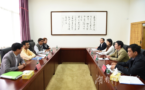 本网讯(通讯员 郑锐)4月14日上午,印度戴薇诗瑜伽学院亚丁博士(YatindraAmoli)、印度瑜伽事业发展部辛仁杰博士(RanvijaySinha)、湖南戴薇诗文化发展有限公司王金汉等一行来德赢官网交流访问。双方就教师互派、学生交换、文化交流、中外办学等领域的合作与交流达成初步意向。