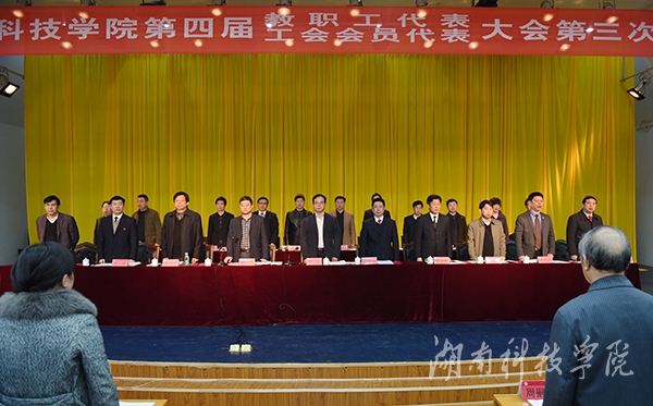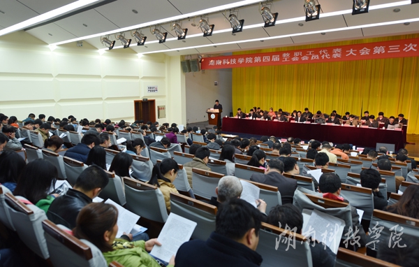 本网讯(记者 裴滢 刘忠奇 刘禹希 摄影 何帅文)3月26日上午,德赢官网第四届教职工代表暨工会会员代表大会第三次会议在尚美楼二楼演播厅开幕。两百余名会议代表、特邀嘉宾、列席代表齐聚一堂,共商改革发展大计。本次大会应到代表155名,实到代表141名,因事因病请假14人,符合法定人数。