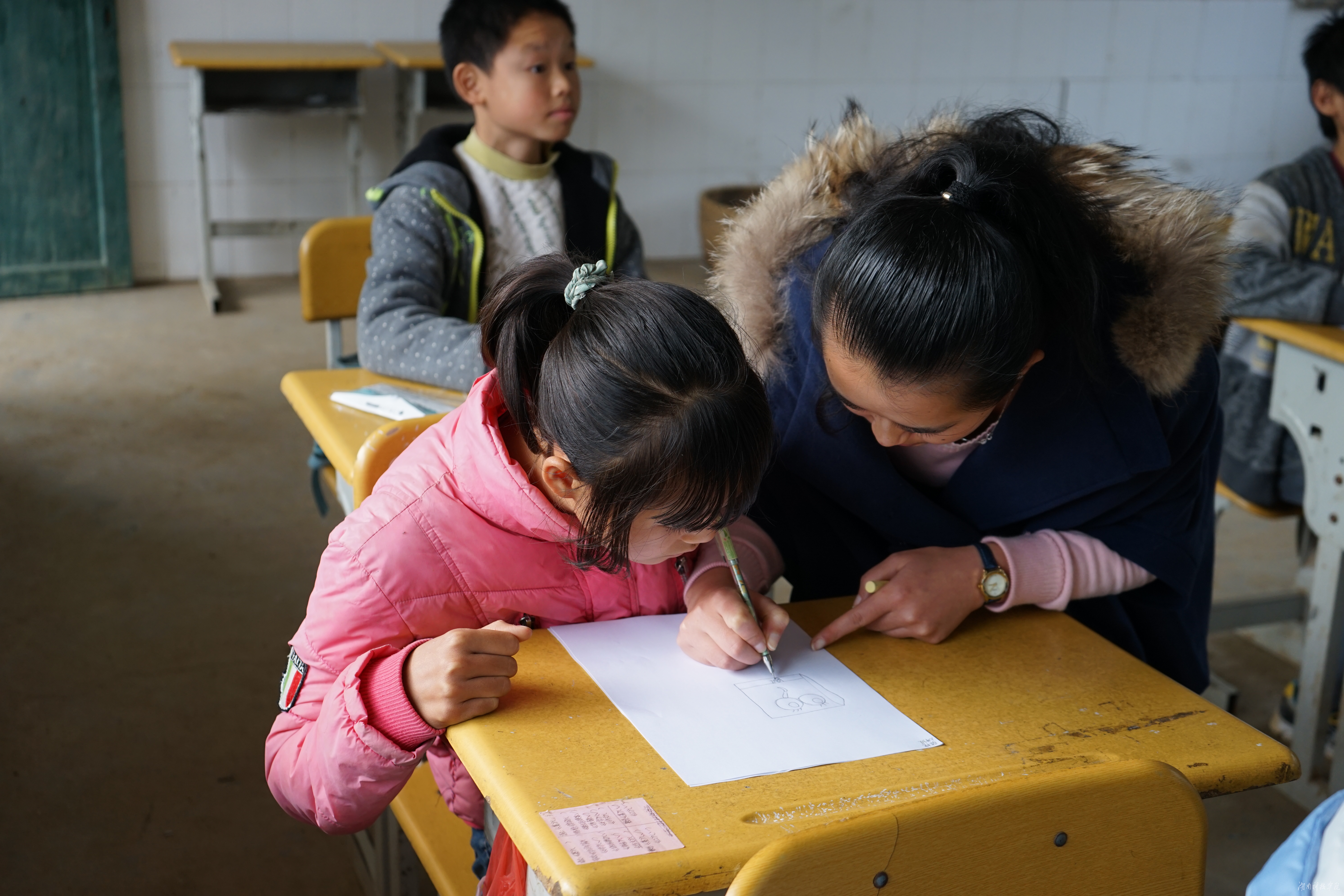 美术与艺术设计学院服务团:用义教行动唤起孩子学习的激情。时间:3月10日,地点:朝阳小学。