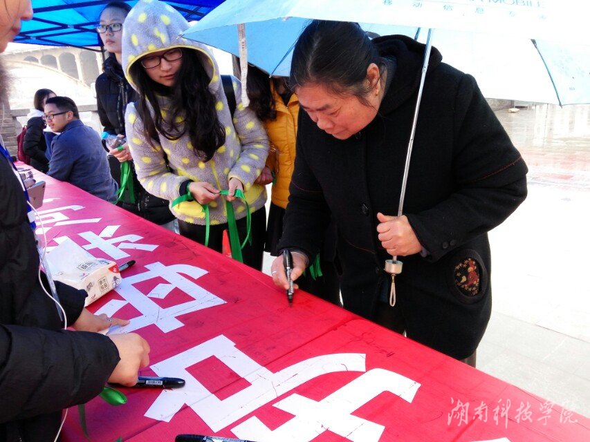 化学与生物工程学院服务团:保护母亲河 共筑零陵梦。时间:3月13日,地点:潇水河畔。