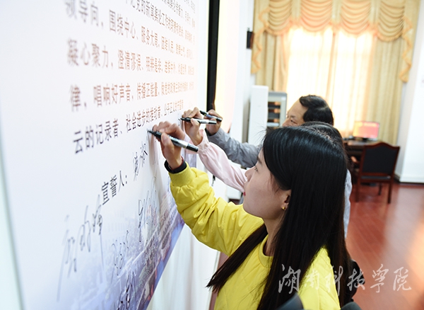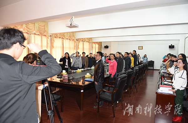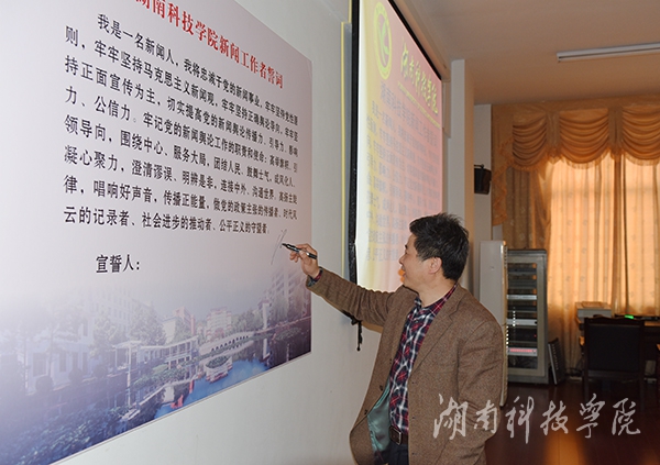 本网讯(记者 熊玲芝 摄影 何帅文) “我是一名新闻人,我将忠诚于党的新闻事业……做党的政策主张的传播者、时代风云的记录者、学校发展与社会进步的推动者、公平正义的守望者。”3月2日,在学习习近平总书记关于新闻舆论工作讲话精神座谈会上,校党委副书记唐艳明带领党委宣传部、各直属党组织宣传委员及传媒学院师生代表庄严宣誓并签名。