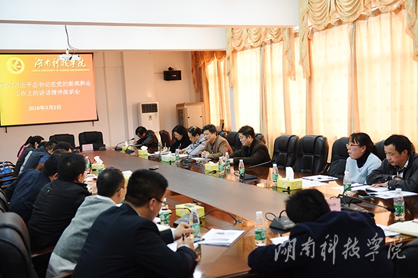 校党委宣传部、统战部部长宋振文说,习近平总书记的重要讲话具有很强的政治性、思想性和指导性,对高校新闻舆论工作有着很大的启示。对照习近平总书记讲话精神,我们怎么办?他认为,学校和各部门各单位要高度重视宣传舆论队伍建设,要切身提高宣传人员的自身综合素质,要以受众为本做好“走基层、转作风、改文风”工作,深入各个学院,宣传报道一线师生员工的先进典型事迹。