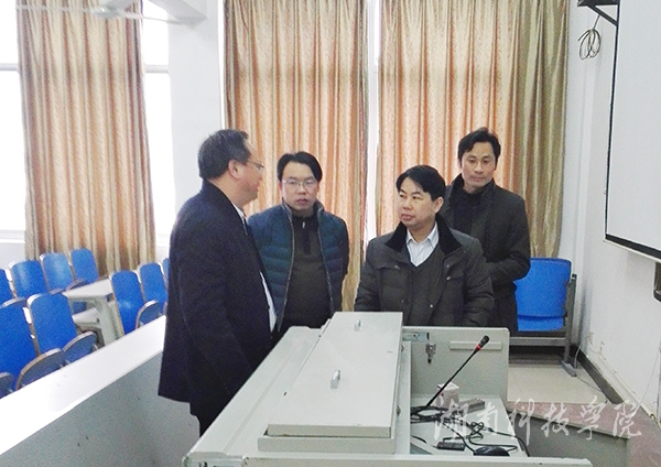 2月23日上午,校党委书记陈弘在开学的第一天就来到电子与信息工程学院,调研和指导该院2016年春季新学期开学工作准备情况。他在了解了该院新学期的工作安排后指出,在过去的一年里,电信学院在基层管理、党的建设、师资队伍建设、干部管理,特别是教育教学改革等方面的工作高效有序,位于全校前列。今年是“十三五”规划的开局之年,希望电信学院在学校的改革中发挥重要作用,全体师生员工要树立信心,明确目标,为将学校建设成为具有鲜明特色的高水平应用型地方本科院校而努力奋斗,并祝愿电信学院在新的一年里比2015年做得更好,给全校带来惊喜。