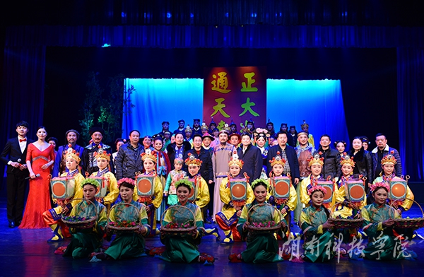 娄底市市委宣传部常务副部长何一波,涟源市市委常委、宣传部部长梁育清,涟源市文广新局党组书记、局长童建武,涟源市文广新局党组副书记、副局长彭冬余,涟源市文广新局党组成员、副局长谭迎春,永州市文广新局党组书记、局长李小星,永州市文广新局党组成员、副局长张科春及德赢官网在家校领导曾宝成、唐艳明、宋宏福、彭立威、郑山明、李常健、吴小林、程智开、袁先友、陈仲庚与全校教职员工一同观看演出。