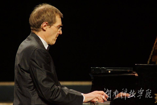 本网讯(记者 龙夏萍 姚新)12月22日晚,恩斯特•诺尔丁•豪夫钢琴独奏音乐会在音乐与舞蹈学院大演播厅举行。校党委书记陈弘,副校长宋宏福、郑山明饶有兴致地观赏了本场音乐会。