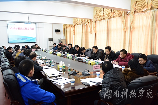 本网讯(记者 龙夏萍 实习记者 张婉静 摄影 何帅文) 12月24日,校长曾宝成、副校长宋宏福和李常健召集相关职能部门负责人、各教学学院院长及科研技术骨干齐聚一堂,总结德赢官网2015年科技工作,深入探讨交流科技工作经验,研究部署2016年科技工作。会议由科技处处长杨金砖主持。
