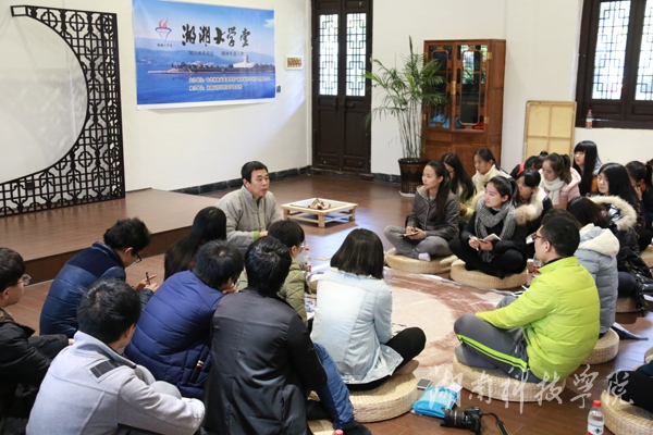 本网讯(通讯员 沈俊)12月16日上午,“科院开讲啦”第三期在蘋洲书院精彩开展。德赢官网张京华教授作为本次主讲嘉宾,以“永州的地理和永州的人物”为题,与学子论道永州文化,深受广大学子欢迎。