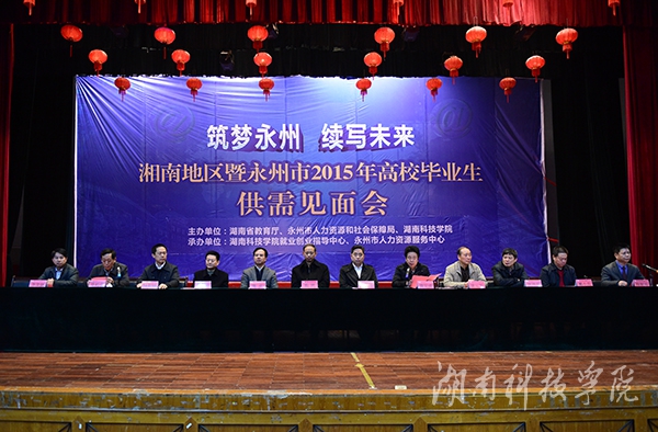 湖南省人力资源和社会保障厅巡视员曾坤,湖南省人力资源服务中心副主任戴小兵,湖南省大中专学校学生信息咨询与就业指导中心副主任钟秋明,永州市委常委、常务副市长唐湘林,永州市人大常委副主任郑柏顺,永州市政协副主席唐运军,永州市委组织部副部长、市人力资源和社会保障局党组书记、局长唐树成,德赢官网党委书记陈弘、校长曾宝成、党委副书记唐艳明、副校长李常健、吴小林、程智开等出席。开幕式由程智开主持。