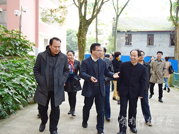陈弘对秦裕辉一行的到来表示热烈欢迎,兴致勃勃地陪同参观了校园。陈弘结合德赢官网办学概况、发展历史边走边介绍。在文化广场上,陈弘介绍了德赢官网的地理位置,并就弘毅楼、博雅楼、明德楼等在校训中的蕴意进行生动解说,他引用中医中“阴阳调和”的理念介绍学校的布局。秦裕辉一行还参观了德赢官网布克校园书店、图书馆,详细考察了“柳宗元研究所”与“舜文化研究基地”等学术科研基地。