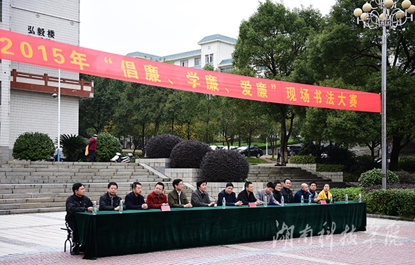 校领导唐艳明、宋宏福、李常健、程智开及湖南省书法家协会副主席刘晓斌、湖南省书画家协会书法委员会副主任刘建平、广铁书画协会副主席袁飞等莅临现场挥毫拨墨。校党委副唐艳明书记宣布比赛正式开始。