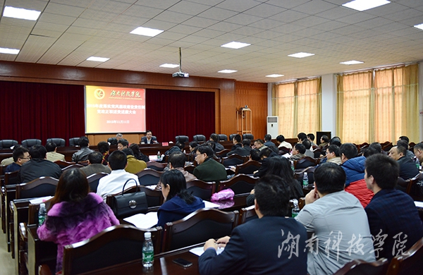 在2015年度党政正职述责述廉大会上,校党委书记陈弘向大会述责述廉。在家校领导曾宝成、唐艳明、宋宏福、彭立威、郑山明、吴小林、程智开、袁先友、陈仲庚及学校中层主要负责人参加测评。