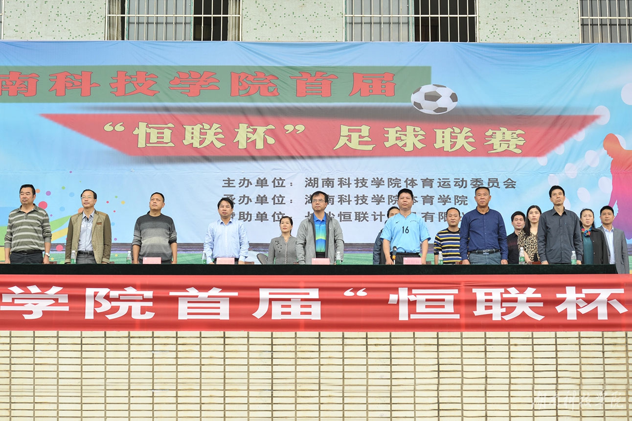 本网讯(记者 孙艳丽 实习记者 刘禹希)11月6日下午,在激昂的进行曲中,德赢官网首届“恒联杯”足球联赛开幕。校党委书记、校足球运动领导小组组长陈弘出席并致辞,副校长、校足球运动领导小组副组长李常健、程智开及长沙恒联计算机有限公司董事长邓自义等领导嘉宾出席,并兴致勃勃地为首场比赛开球。开幕式由程智开主持。
