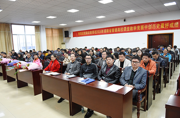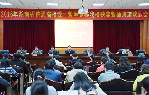 本网讯 10月31日下午,学校在行政办公楼八楼一会议室举行仪式,欢迎参加今年湖南省普通高校课堂教学竞赛的获奖教师凯旋。校党委书记陈弘、校长曾宝成出席并讲话。在校领导唐艳明、郑山明、李常健、吴小林、袁先友出席。仪式由副校长李常健主持。