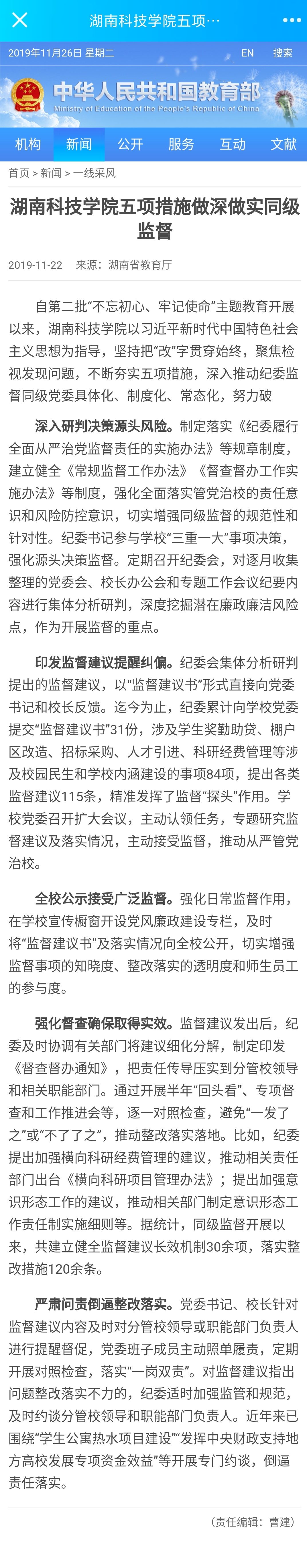 本网讯 11月22日,教育部官网以“德赢ac米兰官方合作vwin五项措施做深做实同级监督”为题,推介德赢官网做深做实同级监督工作经验。