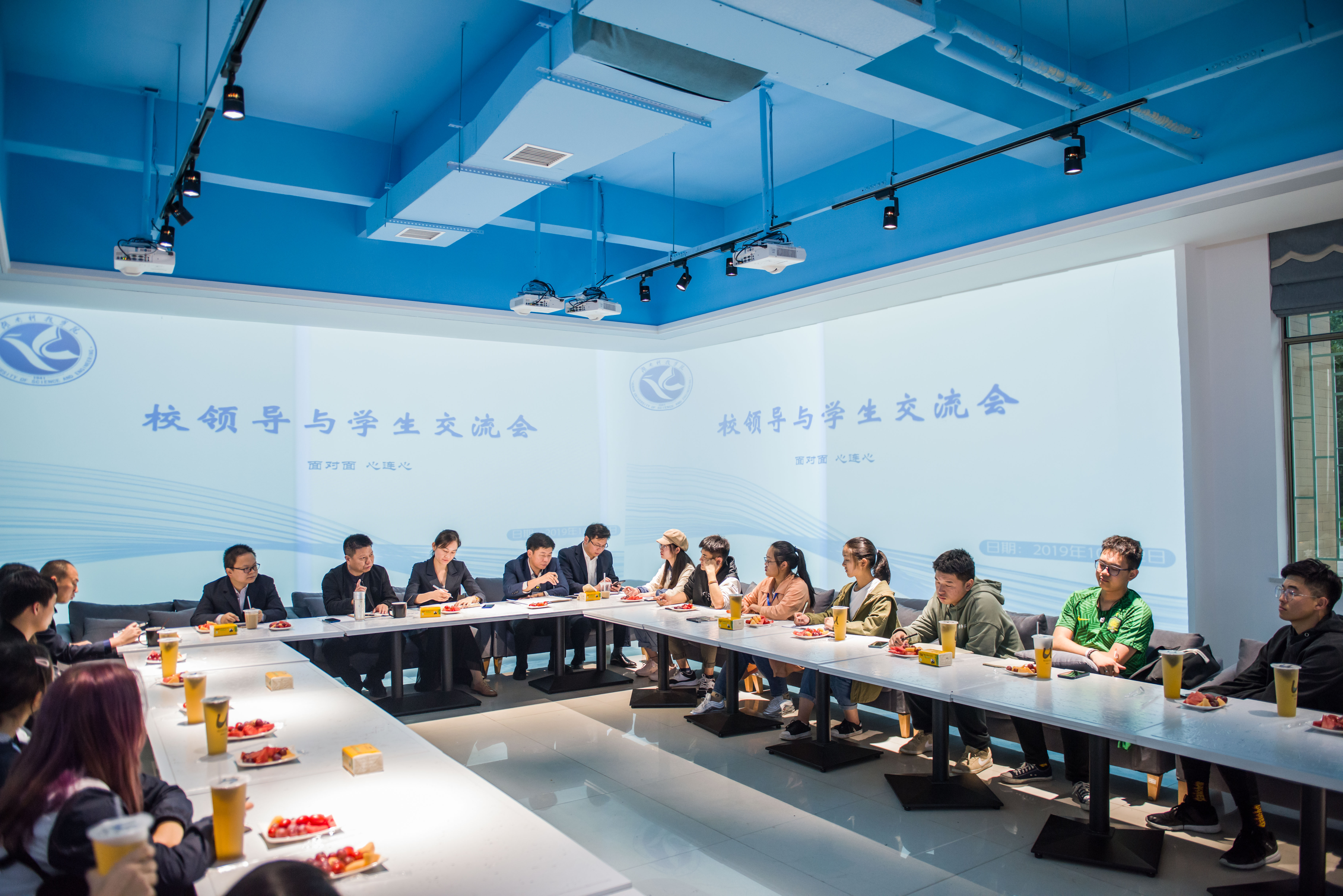 本网讯 10月22日下午,学校在创新创业大楼一楼举行校领导与学生交流会。副校长程智开,学工部、教务处、团委、后勤服务总公司等部门负责人,与来自各个学院的新生代表进行面对面交流。