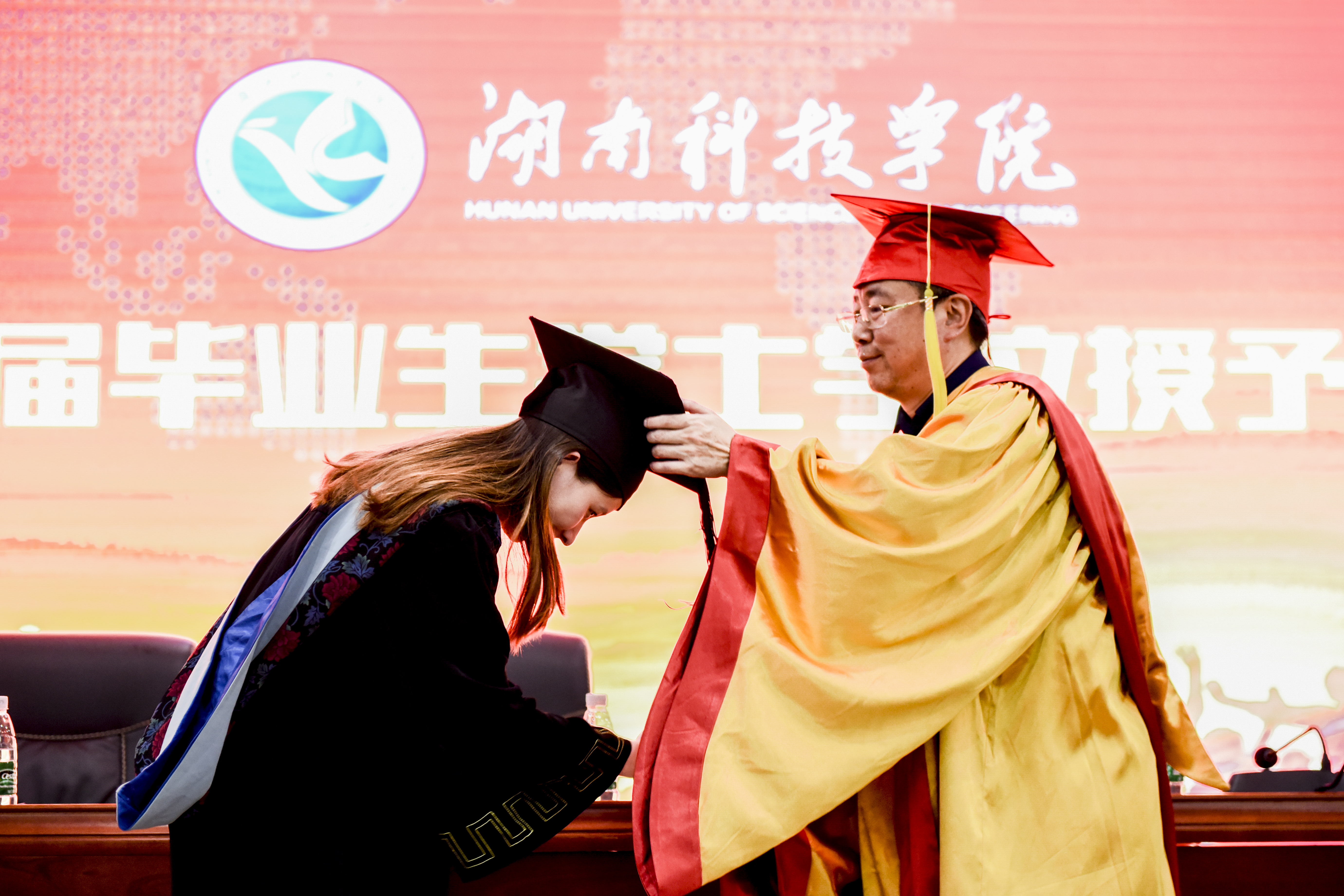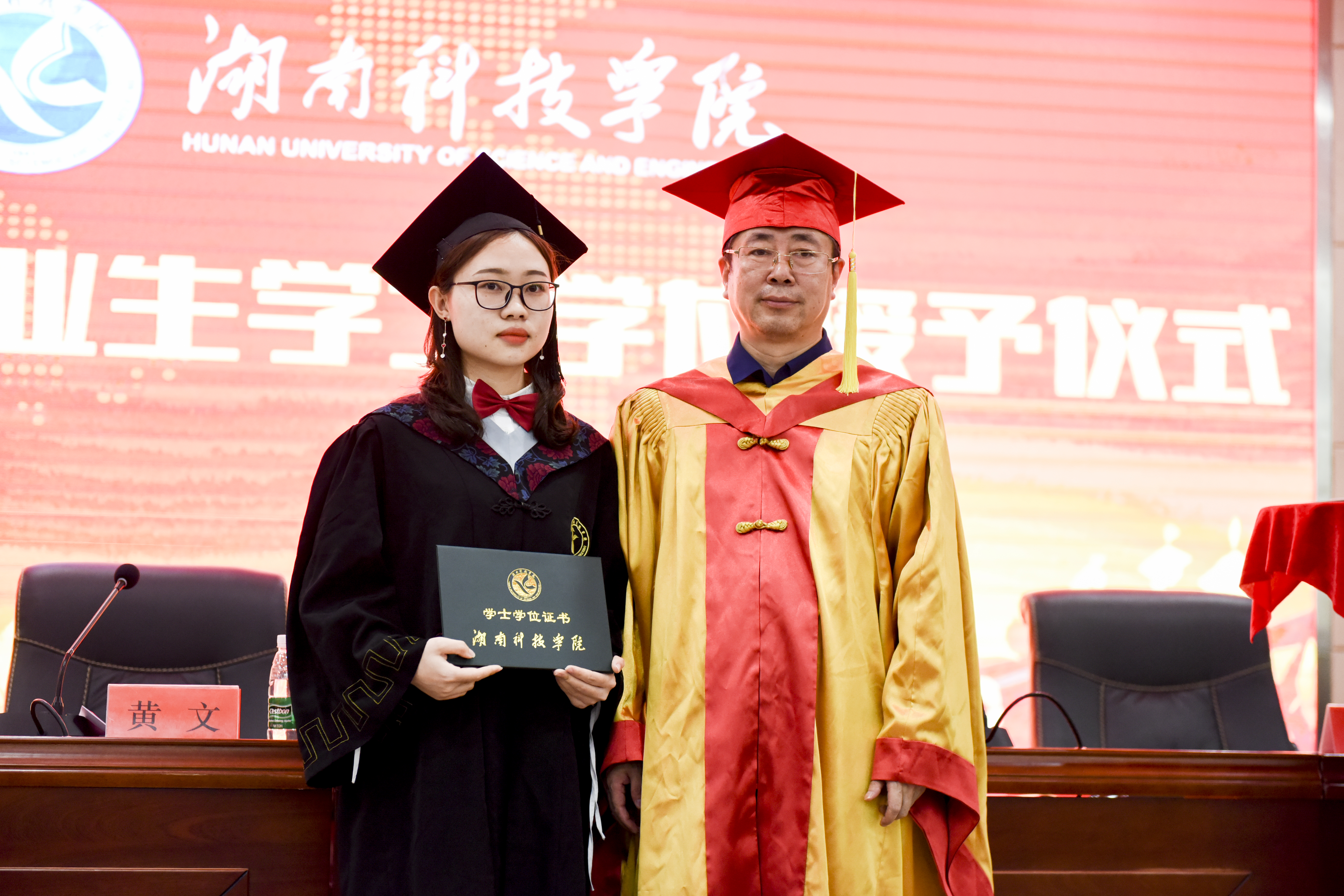 现场,3488名毕业生们穿上整齐端庄的学士服,怀着激动的心情迎接这一人生中的庄重时刻。曾宝成面带微笑,和蔼可亲地给毕业生拨穗、正冠、授予学位,然后握手,合影,在师生们的见证下完成仪式的整个流程。同学们接过学位证书,学校的关怀和学成的喜悦,洋溢在每一位毕业生的脸上。他们深情地向校长、老师鞠躬致谢,这珍贵的一刻瞬间定格,留下永恒的青春记忆。