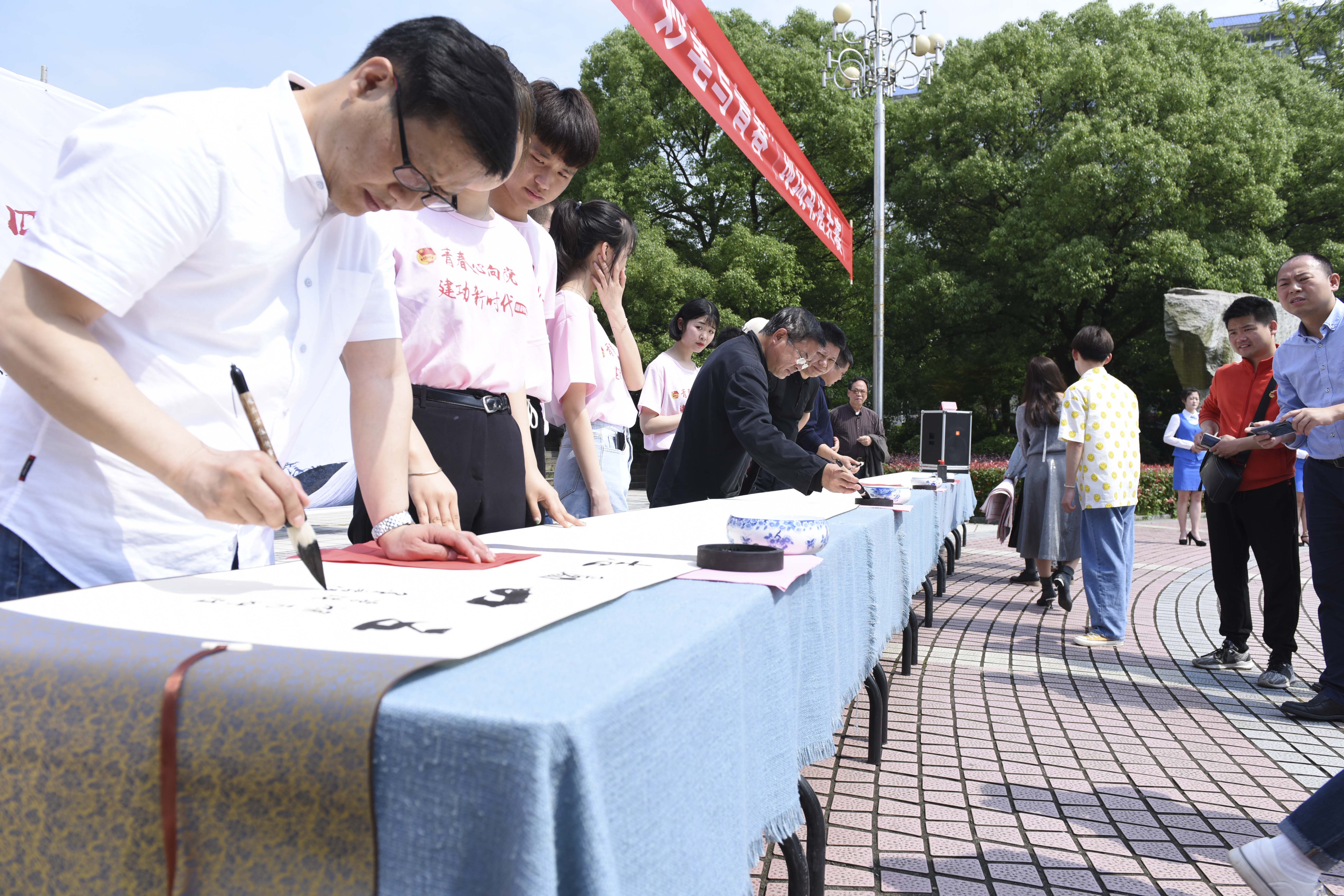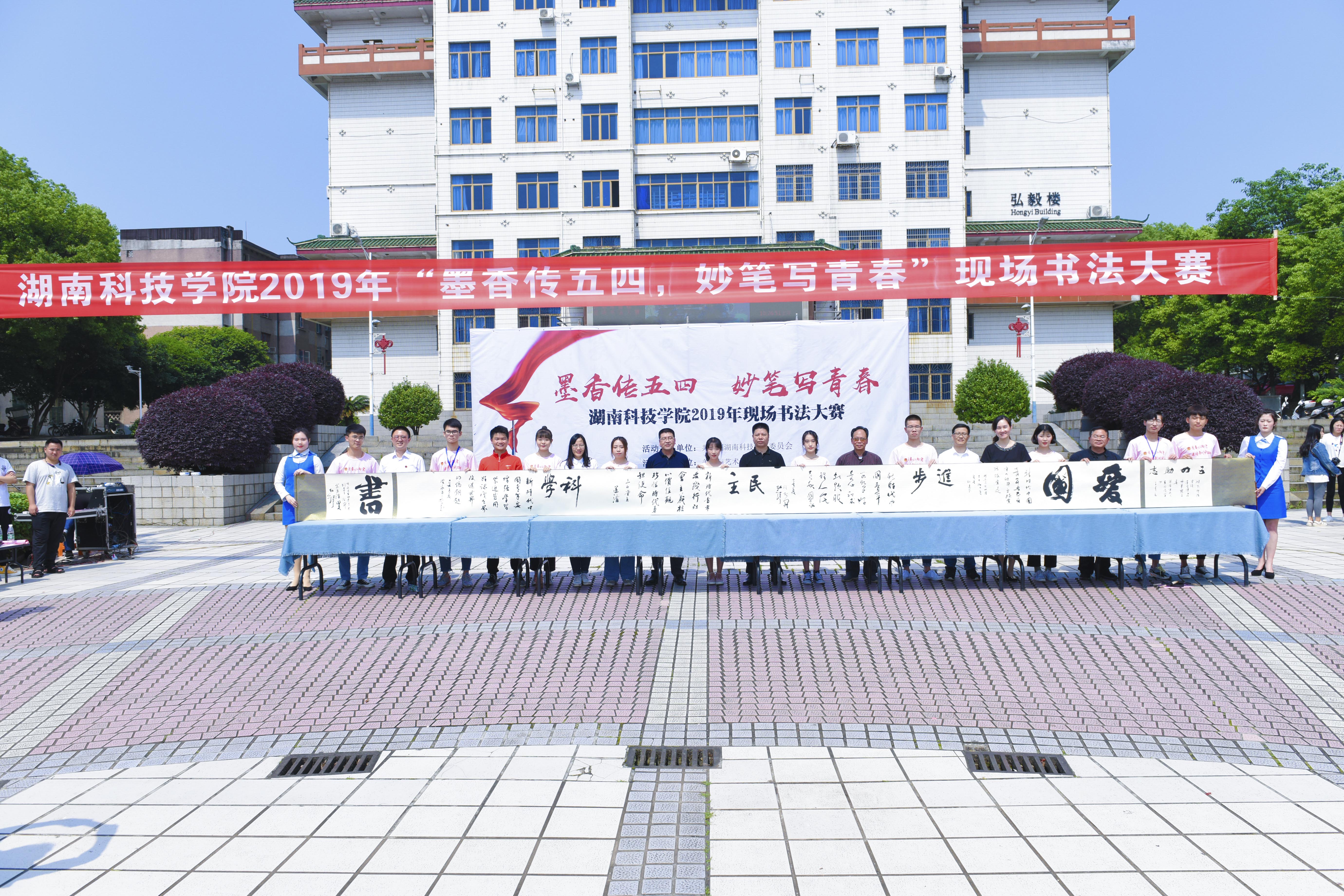 本网讯 5月11日,伴随着悠扬、古典的音乐,德赢官网 “墨香传五四,妙笔写青春"现场书法大赛在文化广场举行,大赛吸引了近百余名师生同场竞技。副校长程智开,中国书法协会会员、湖南省书法家协会理事、湖南省书法家协会行书委员会秘书长刘建平,永州市书法家协会第一届主席黎笃田,永州市书法协会副主席宋运清,德赢官网书法研究所所长唐幼铎参加活动。