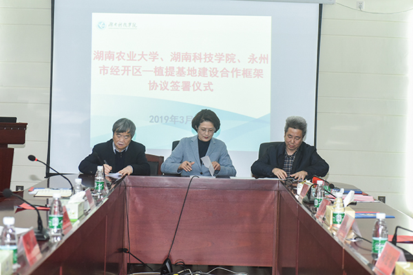 本网讯 3月12日下午,学校与湖南农业大学、永州经开区举行合作签约仪式,共同签订了《湖南农业大学和德赢ac米兰官方合作vwin科技支撑永州经开区植提基地建设合作框架协议》。湖南农科院党委书记柏连阳教授,湖南农业大学曾建国教授,永州经开区党委副书记、管委会主任李瑛,校党委书记、校长曾宝成,副校长宋宏福,化学与生物工程学院负责人和相关学科团队负责人参加仪式。仪式由宋宏福主持。