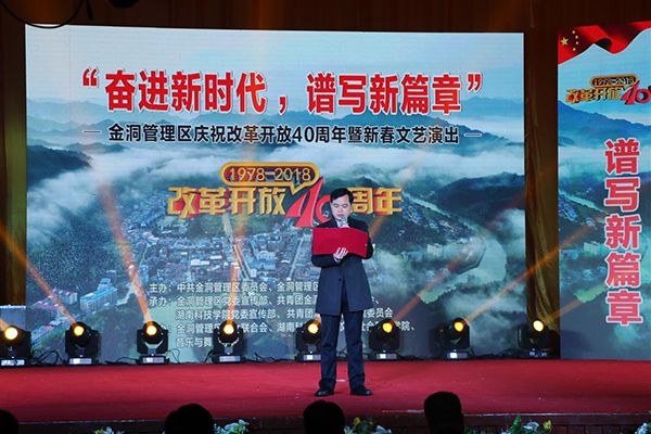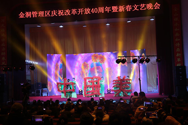 本网讯 1月3日,“奋进新时代,谱写新篇章——金洞管理区庆祝改革开放40周年暨新春文艺晚会”在金洞大会堂举行。活动由金洞管理区党委、管委会主办,由德赢官网党委宣传部、团委和金洞管理区党委宣传部、团区委承办,德赢官网人文与社会科学学院、音乐与舞蹈学院和金洞管理区妇联协办。学校副校长程智开,党委委员、宣传部长杨涛等到会观看演出。