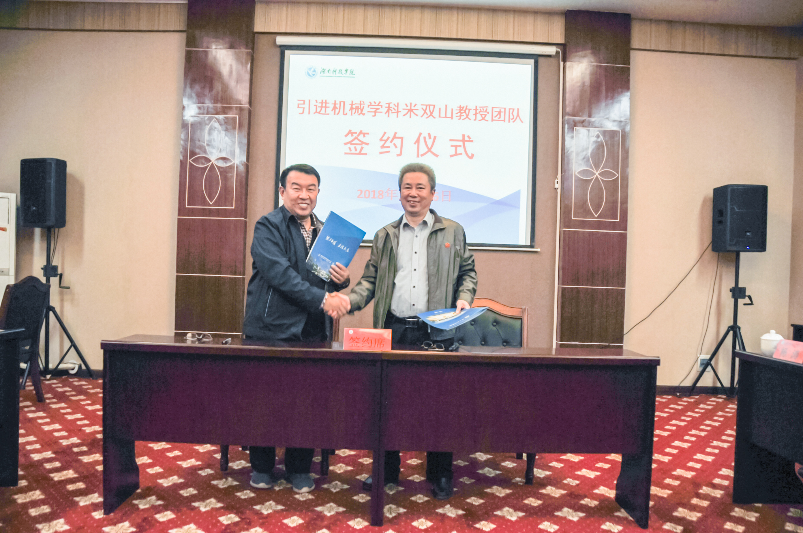 米双山教授团队6名成员,均为教授博士,分别毕业于清华大学、北京理工大学等国内知名高校,长期从事高等教育教学和科研工作,在机械工程领域有丰富的学术成果和较大的学术影响。签约后,米双山教授发表热情洋溢的讲话。他说,团队经过慎重选择,最终决定全职落户德赢ac米兰官方合作vwin,团队成员深深感到学校浓厚的学术氛围和干事创业的工作环境,校园环境优美,领导同事热情友好,办学理念先进,发展前景美好。他向大家描述机械工程学科未来3-5年的发展规划,表示有信心也有实力建设好机械工程学科及相关专业。