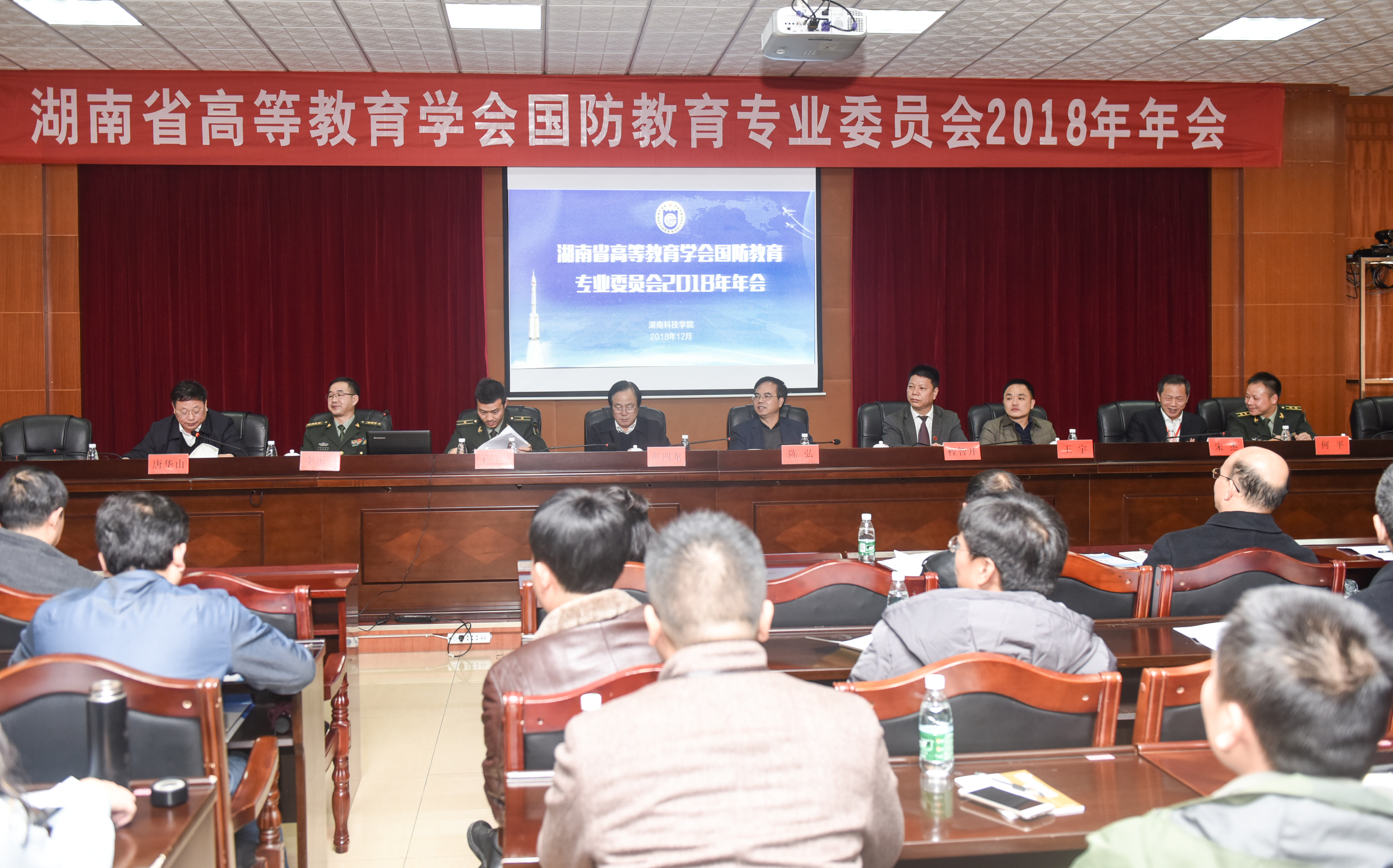 本网讯 12月6日上午,湖南省高等教育学会国防教育专业委员会2018年年会在德赢官网召开,省教育厅体卫艺处处长彭四龙,校党委书记陈弘,副校长程智开,省军区、省教育厅相关领导以及学会会员共120余人参加。