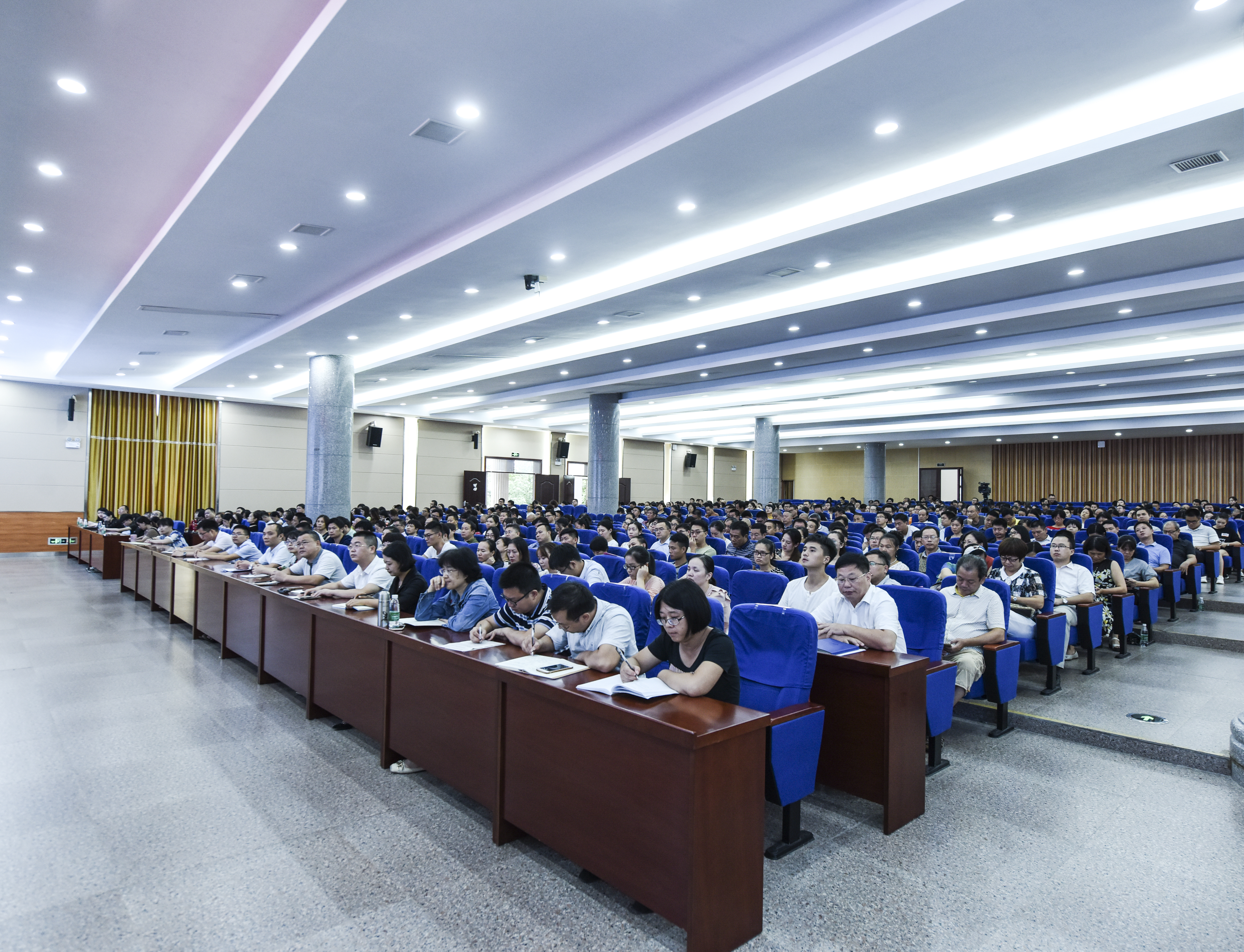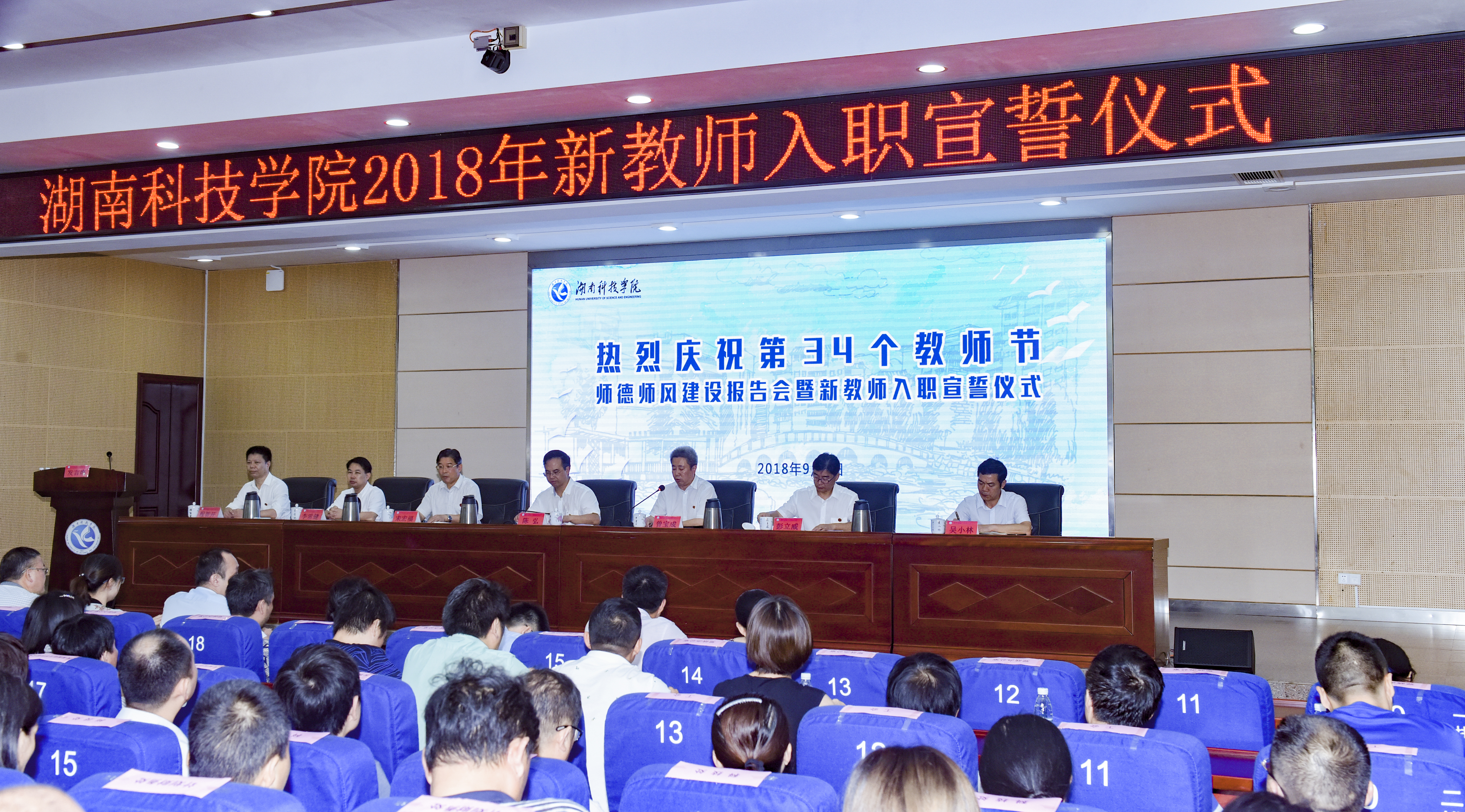 本网讯 9月6日下午,学校在潇湘大讲堂召开师德师风建设报告会暨新教师入职宣誓仪式,庆祝第34个教师节。校领导陈弘、曾宝成、宋宏福、彭立威、李常健、吴小林、程智开和千余名教师出席。党委副书记、校长曾宝成主持大会。