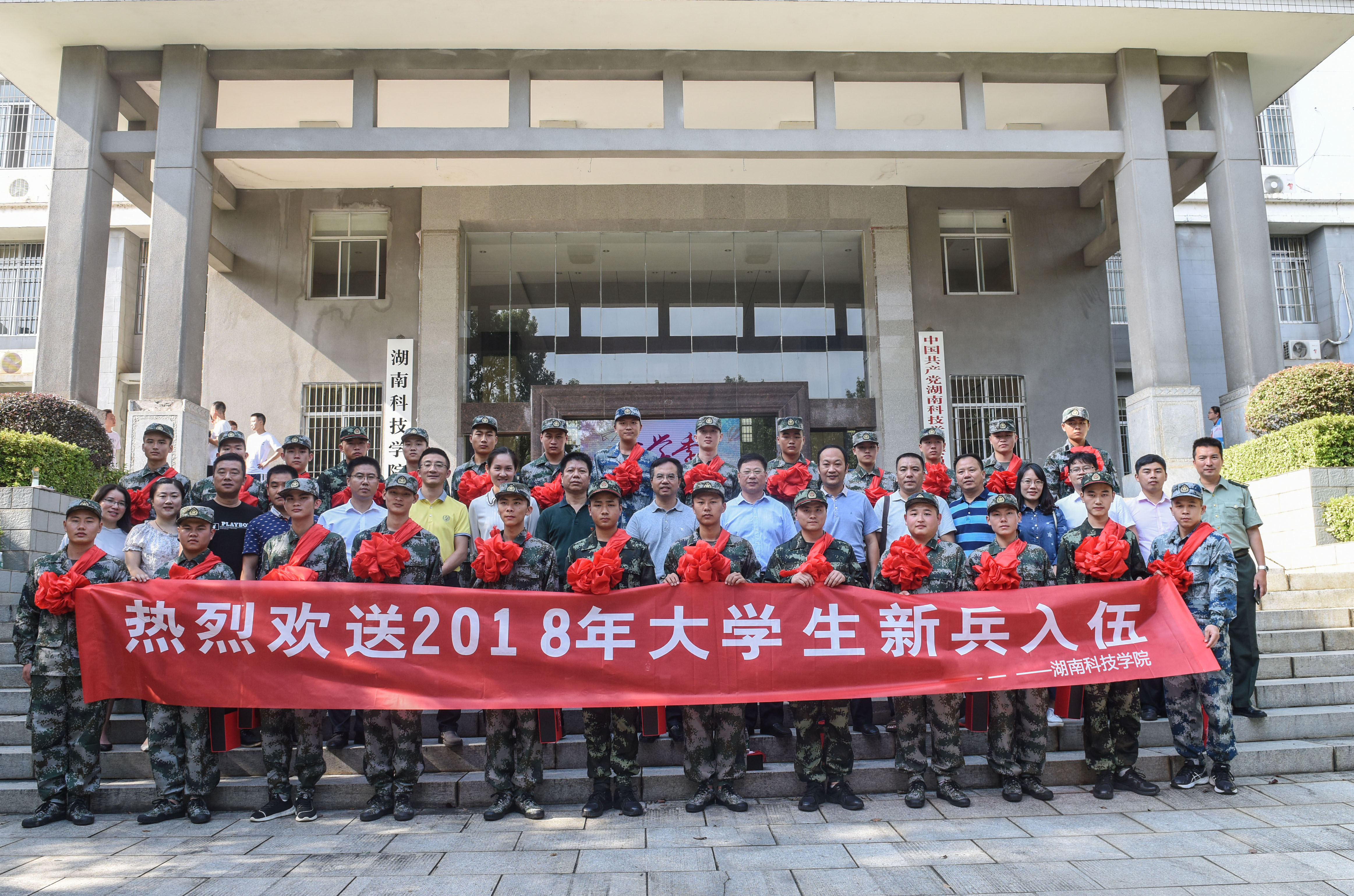 陈弘首先代表学校党委、行政向入伍新兵表示热烈的祝贺,并提出三点期望:一是在政治品格上历练自己,在军队里接受党性与军人血性的锻炼,成为一个信念坚定、政治合格的共产主义战士;二是希望同学们在部队经过严格纪律历练,加强纪律意识,在组织性和纪律性上面有很大的提高和进步;三是在意志上要得到严格训练,锻造出战胜困难的信心、坚定的意志与顽强的毅力,对待任何困难都能勇敢面对。“军人是无上光荣的,衷心祝愿同学们在通过部队的历练后光荣的回到母校,母校等着你们载誉而归。”