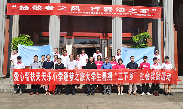 本网讯  7月14日上午,传媒学院举行天天乐爱心帮扶暨上岭桥孝道文化传播“三下乡”实践团队启动仪式,校党委书记陈弘为实践团队授旗。