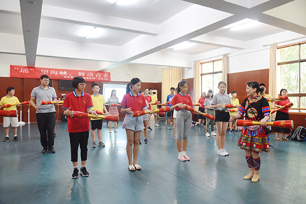 10日下午,在“‘瑶’望海峡,舞动青春”的永州舞蹈文化交流中,音乐与舞蹈学院胡玲梅老师以“永州江华瑶族长鼓舞”为主题,以生动有趣的语言向永台青少年们介绍了瑶族文化以及永州江华特色小长鼓,她从长鼓的种类、形状、表演形式、风格特点等多个角度带领大家走入瑶族舞蹈文化。随后,永台青少年们还共同欣赏了德赢官网编排的瑶族舞蹈系列三部曲:《跳盘王》《打起铜锣追男崽》《过山》,欣赏完后,青少年们还饶有兴致地学习长鼓舞中的简单律动,相互交流探讨,场面温馨热闹,和谐友爱。