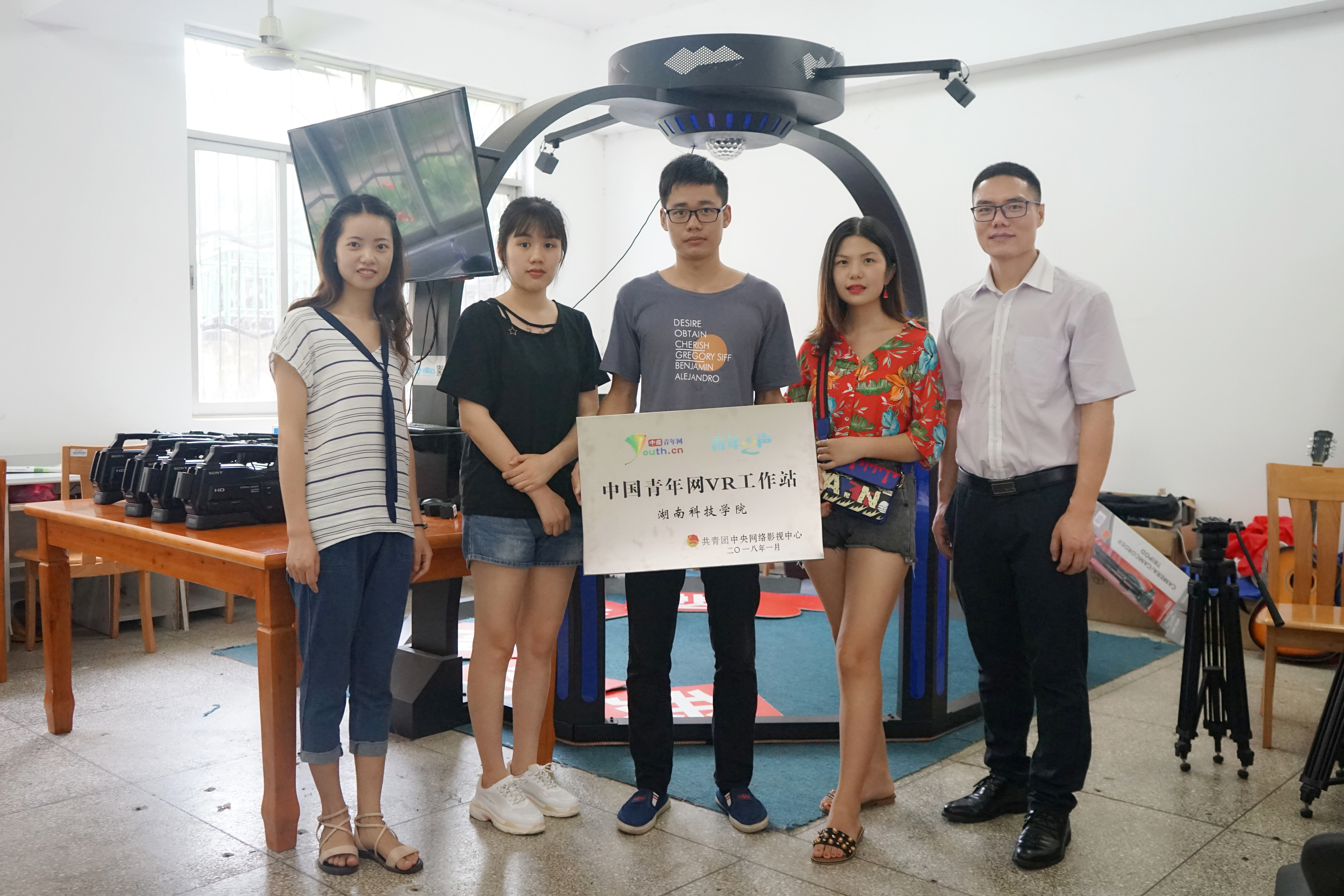 “‘以赛促学’不仅能让学生们实践理论知识,激发他们对专业学习的热情,更能促进教学相长。”借助这一契机,在积累了丰富的赛事指导经验后,2016年陈世灯老师在电信院创新中心成立了“影视创客空间”工作室。初期工作室主要从事影视作品、网络课程制作等工作。2017年在深圳尚观支持了一套VR设备后,工作室又与团中央中青网合作,正式挂牌成立了“团中央VR工作站”,成立了德赢ac米兰官方合作vwinVR协会。