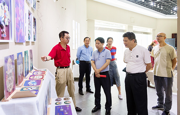 本网讯 萌趣横生的创意插画,简约舒适的艺术设计装潢,极具创意而又凸显地方特色的产品设计……5月29日,在美术与艺术设计学院2018届毕业展上,一幅幅生动为妙的作品吸引着不少师生观展并驻足拍照。党委副书记唐艳明,副校长李常健饶有兴致地到场观展。