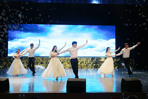 整场晚会精彩纷呈、高潮迭起,自始至终洋溢着浓浓的欢乐氛围,给现场师生带来一场非凡的视听盛宴。其中,由科技处处长杨金砖所作的《德赢ac米兰官方合作vwin赋》以经典传唱的方式演绎,带领观众品读经典作品;吉他协会自主填词、谱曲,现场弹唱《如果还有明天》,令现场沉醉其中;灵犀书法协会、旅游管理协会、竹笛协会共同表演的《云水禅心》,将茶艺、书法、竹笛、古筝、古曲、汉服等诸多传统文化元素融为一体;表演协会的T台秀以脑洞大开的设计和新潮的时尚再次将场上气氛拉向高潮。为展示德赢ac米兰官方合作vwin学生社团联合会杨梓塘小学义教项目成果,晚会现场还邀请了杨梓塘小学的小朋友们进行经典国学文艺表演。