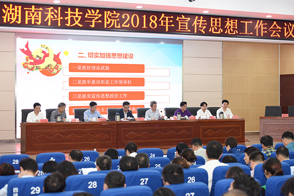 副校长宋宏福宣读2016-2017学年“优秀辅导员”和“优秀班主任”表彰决定、2017 年度市直机关基层党组织“五化”建设考核验收情况的通报。纪委书记彭立威作了题为《以永远在路上的执着 不断推动全面从严治党向纵深发展》的纪检监察工作报告,副校长吴小林作了题为《以“奋进”音符谱写“平安”之歌》的综治维稳工作报告。会议还书面印发了《2018年党建工作报告》《2018年宣传思想工作报告》《深入推进习近平新时代中国特色社会主义思想进教材进课堂进头脑行动方案》等。
